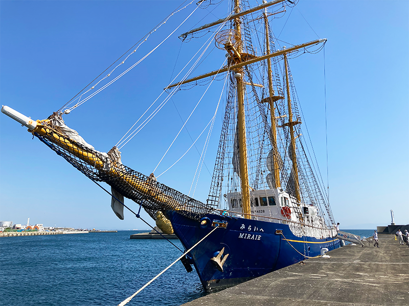 「帆船みらいへ」に体験乗船し、再開発が進むウォーターフロントエリアの景色を海上から楽しみました。