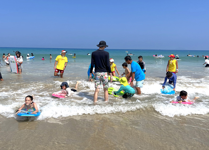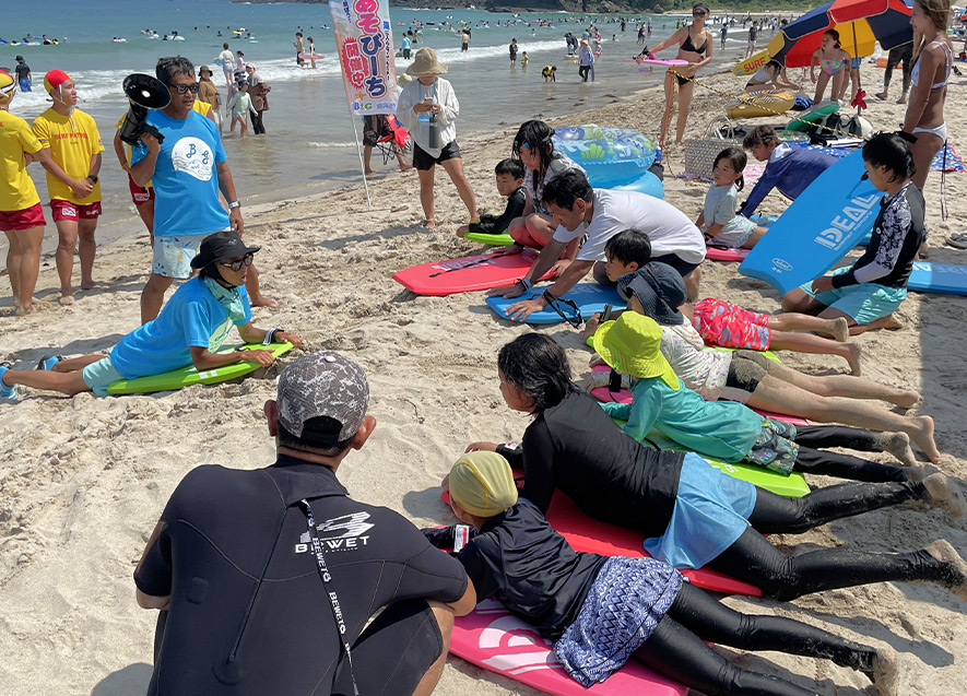 ボディボードとサーフィンの体験会を実施。初めて体験する子どもも多い中、「B&G海クラブ伊豆海洋クラブ」のスタッフ指導の下、みんな夢中になってチャレンジした。