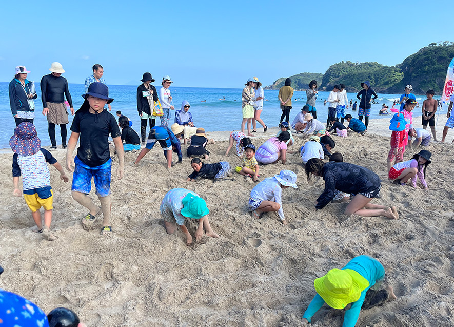 「子どもの部」と「大人の部」に分かれ、それぞれ砂浜に埋まった宝物を懸命に探していた。