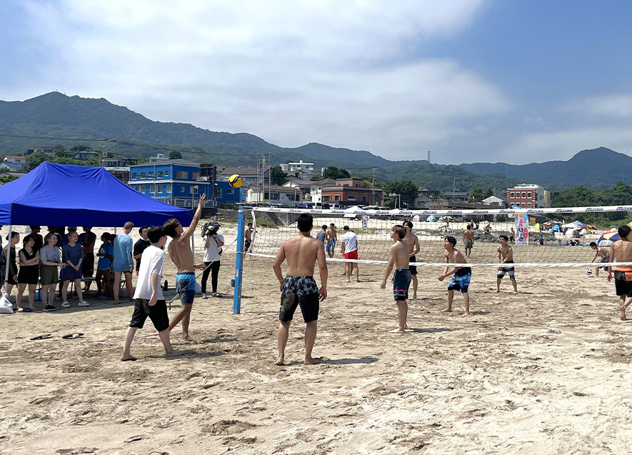 トーナメント形式でビーチバレー大会を実施。地元の中学生や観光客など、70人以上参加し白熱した試合を繰り広げた。