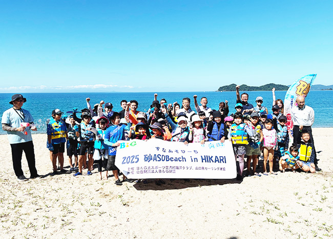 7月21日の「海の日」、山口県で「砂ASOBeach in HIKARI」を初開催。会場は室積海岸と山口県スポーツ交流村ヨットハーバーの2会場で実施し、市内の子どもたちと保護者、スタッフあわせて約250人が参加した。