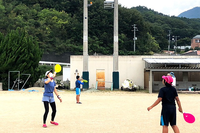 フレスコボールを親子で楽しむ様子