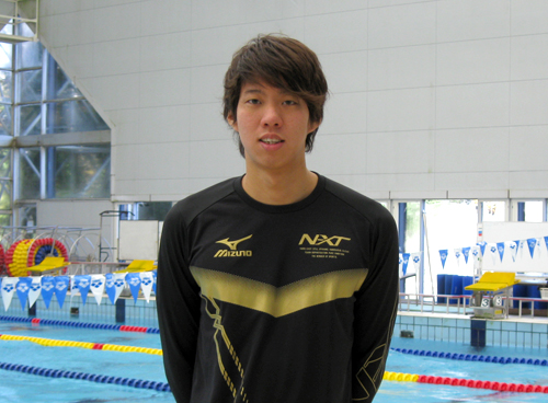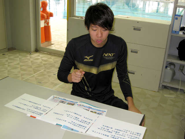 母校、早稲田大学のプールで練習前に取材させていだきました