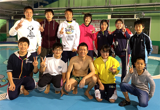 中学生になってからは水泳部に入って毎日、放課後5時半ぐらいまで学校のプールで練習し、それから13人いる部員全員が海洋センターまで歩いて行って、8時ぐらいまで海洋センターのコーチに指導してもらっていました。一緒に通っている仲間は学年が違っても家族のように仲が良く、海洋センターでは山本コーチをはじめ、中学校の頃からお世話になっている浜岡さんなど、複数のコーチが交代で見てくださったので、とても充実した練習ができました。