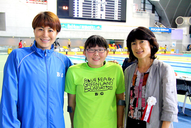 私は普段から健常者の大会に出ていますが、それは皆に負けないように頑張ることで、力がつくからです。どれだけ差をつけられてもいいから、同じ舞台に挑み続けたいと思っています。でも、B&G全国水泳大会のような、全国規模で行う健常者の大会には出たことがなかったので、会場に入ったときは応援の盛り上がり、声援の多さにワクワクしました。また、競技が始まると速い人がたくさんいるので、とても刺激を受けました。