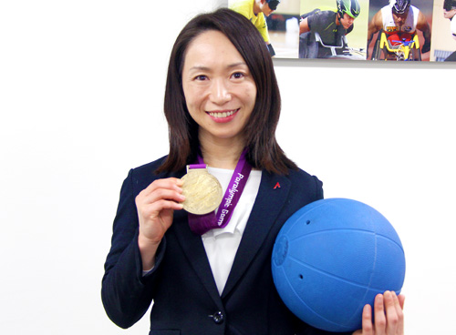 | プロフィール | 浦田 理恵(うらた りえ) 1977年7月生まれ、熊本県南関(なんかん)町出身のゴールボール(※1)選手。 20歳を過ぎ急激に視力低下し、網膜色素変性(※2)症と判明。左目の視力はなく、右目も視野が95%欠損しており、強いコントラストのものしか判別できない。 現在は、2020年東京パラリンピックでの金メダル奪還を目指し、日々練習に励んでいる。 パラリンピック3大会出場(北京・ロンドン・リオデジャネイロ)、2012年ロンドン大会で金メダル獲得。 2016年リオデジャネイロパラリンピック主将。 2010年アジア選手権金メダル、日本選手権大会2005年から全5回優勝。 |