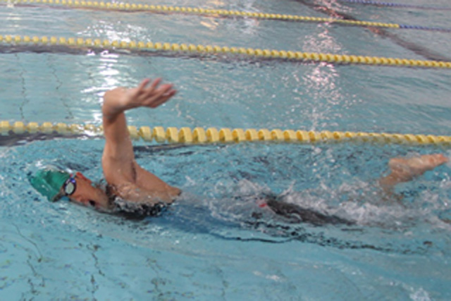 左手を大きく動かし力強く泳ぐ梶選手