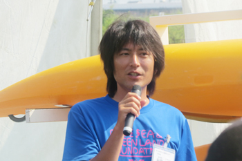 マイク大好きです!カヌー指導同様に司会もおまかせあれ~