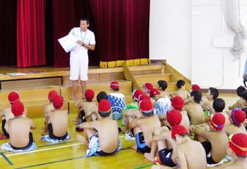 「水辺の安全教室」で子供達に自分の身は自分で守る大切さを伝えています