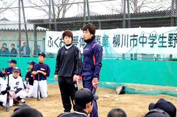 野球は小学2年生からはじめました。やるのも、教えるのも燃えます(写真左)