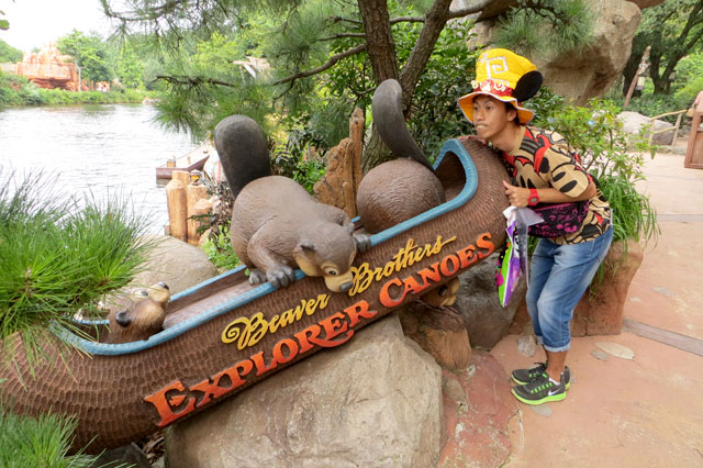 ディズニーランドにいる親友のビーバーブラザーズ。口元が似てるでしょ?