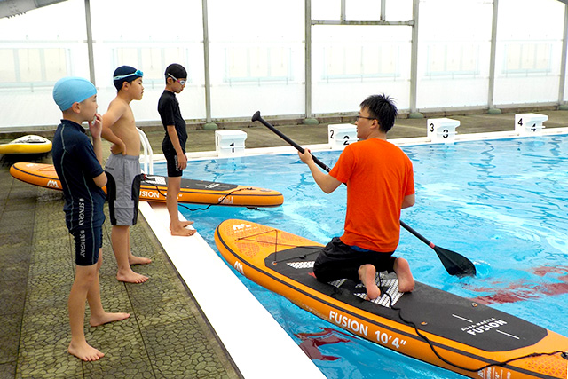 プールでSUP体験の様子