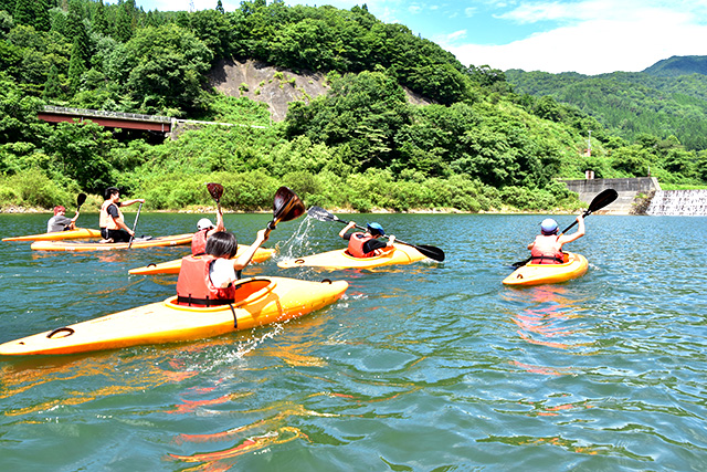 九頭竜湖でカヌー教室の様子