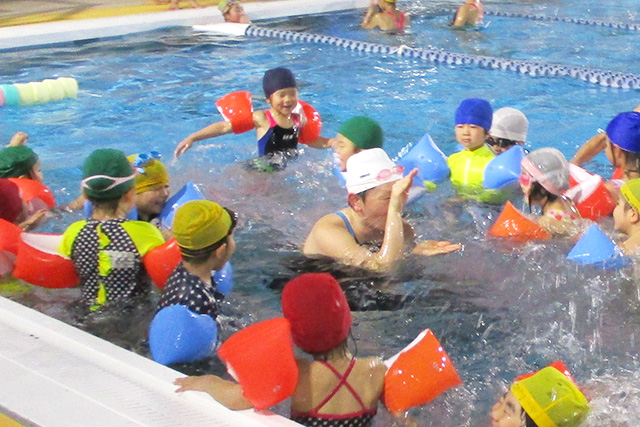 いつまでもいい姿勢で、自分の足でプールに通って頂けるよう楽しく、しっかり指導しています。 -