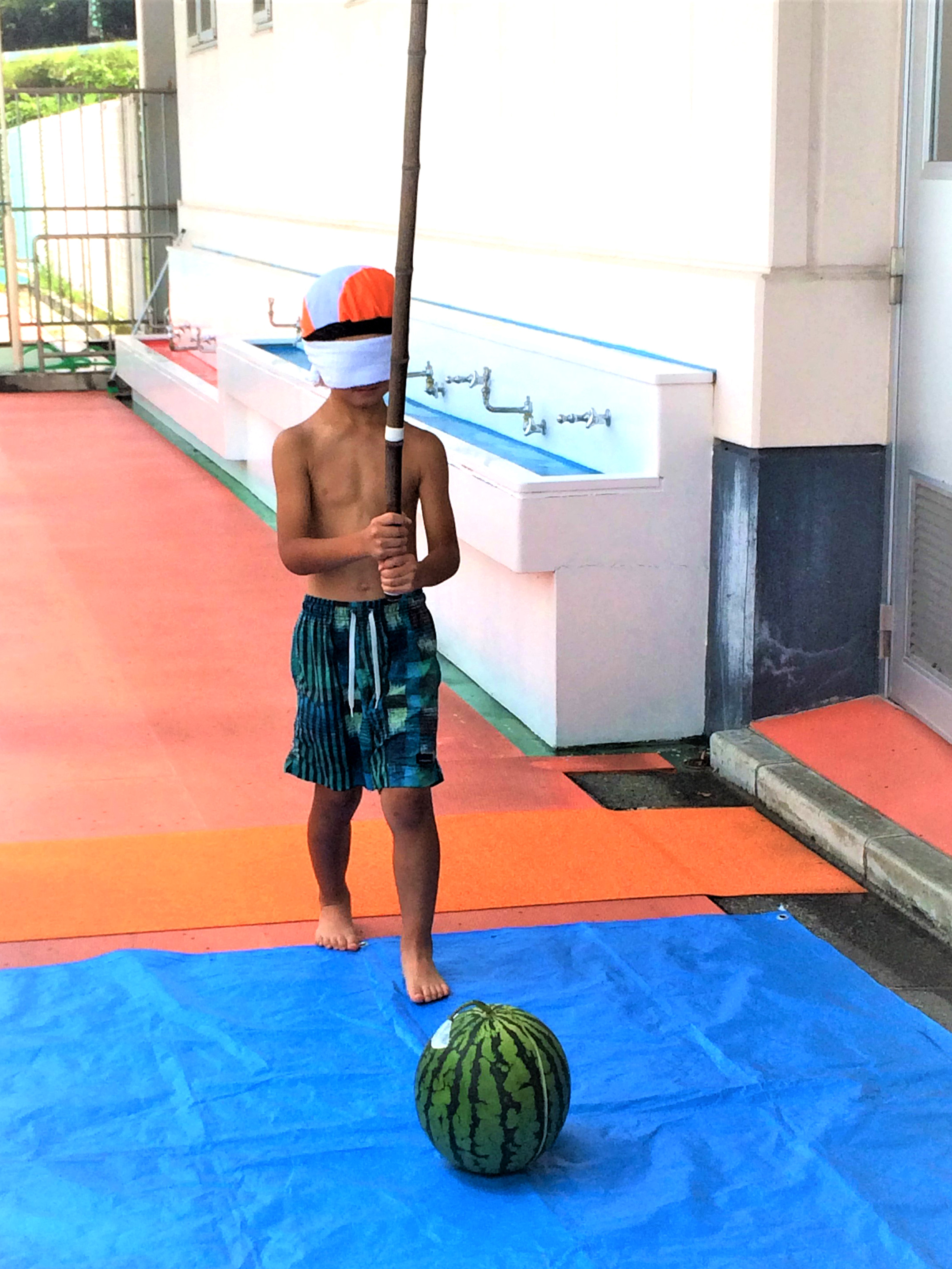 シャリシャリであまい波田の下原スイカ「サンハート」でスイカ割