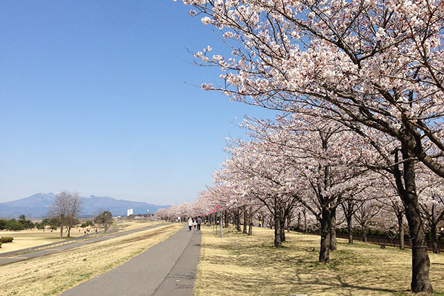 鬼怒川の河川敷を利用し、町制100周年記念として作られた水とふれあえる公園「ゆうゆうパーク」には、300本以上のソメイヨシノが咲き乱れる桜づつみがあり、桜の名所となっております。3月下旬から4月上旬までが見ごろです!!
