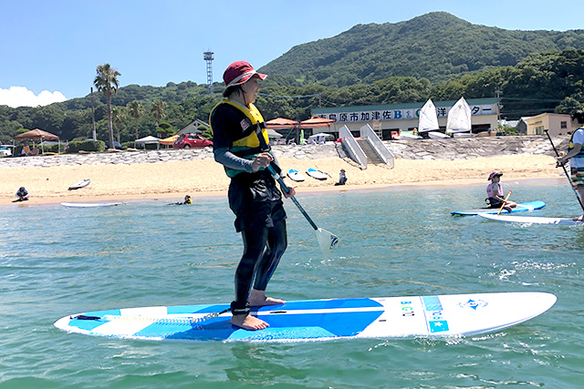 SUP教室にて指導している様子