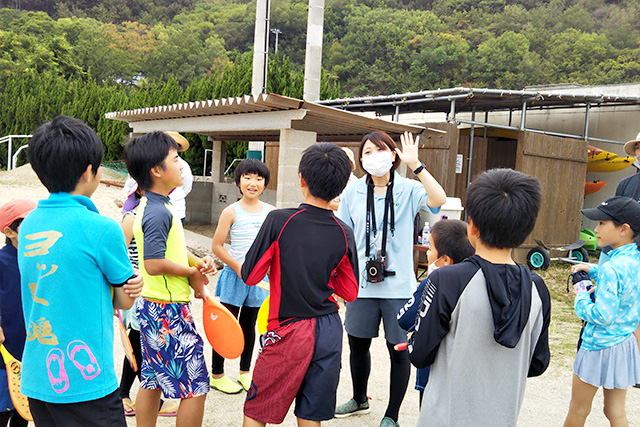ミニ砂ASO Beach in 小豆島でのフレスコボール指導の様子
