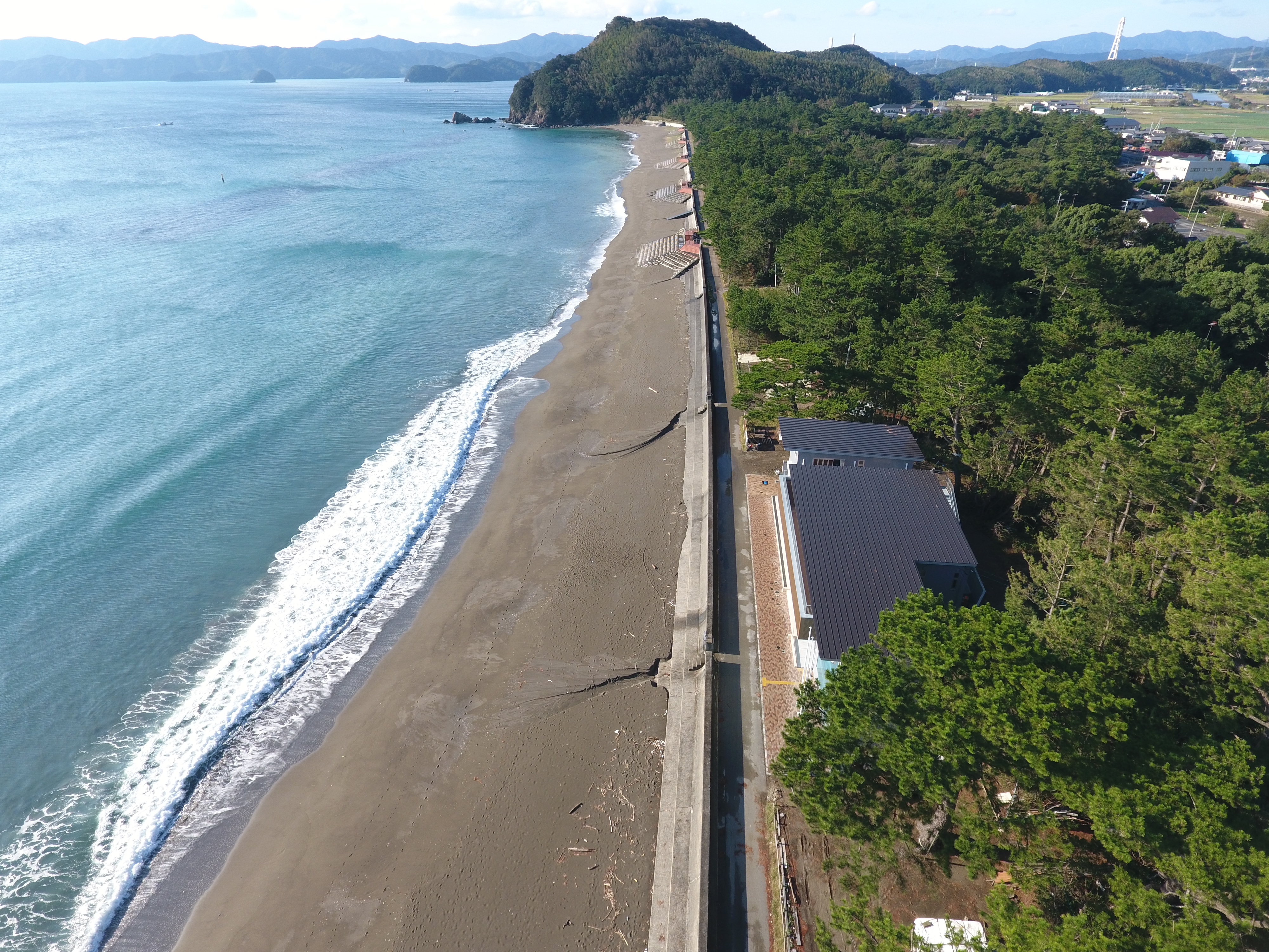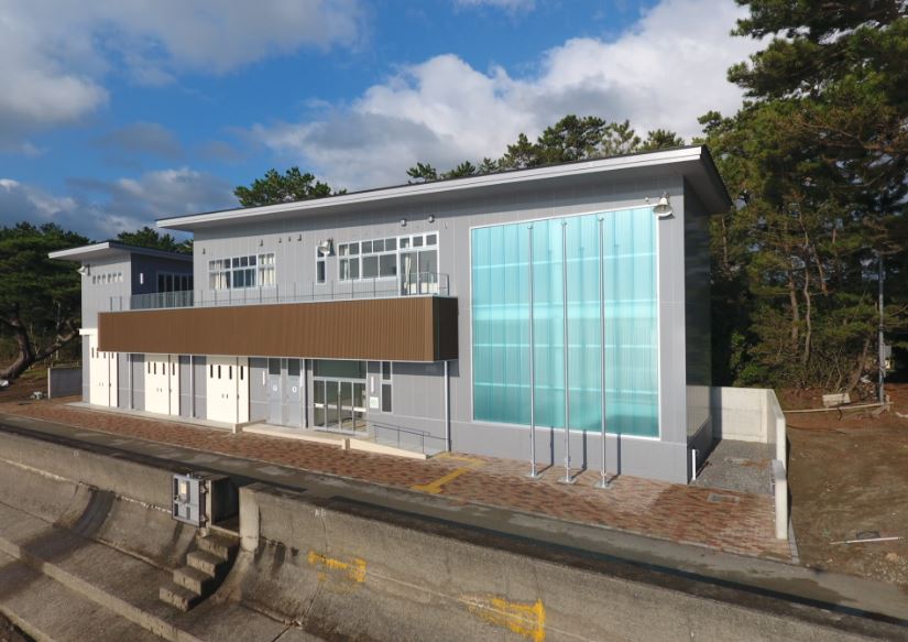 海洋センター(体育館)は海の目前に位置し、グランド、ゲートボール場と隣接している。