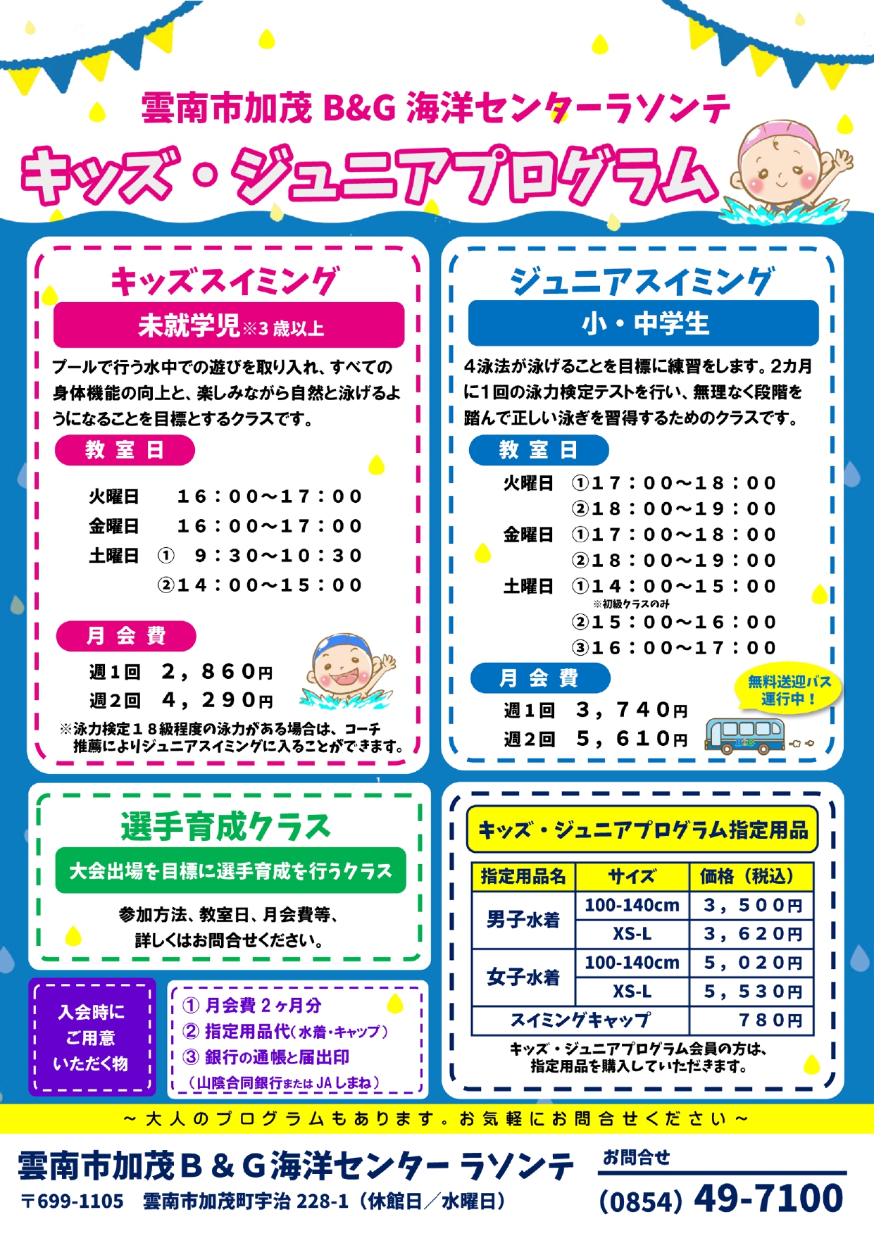 2026/04/01〜2027/03/31 プールプログラム キッズスイミング