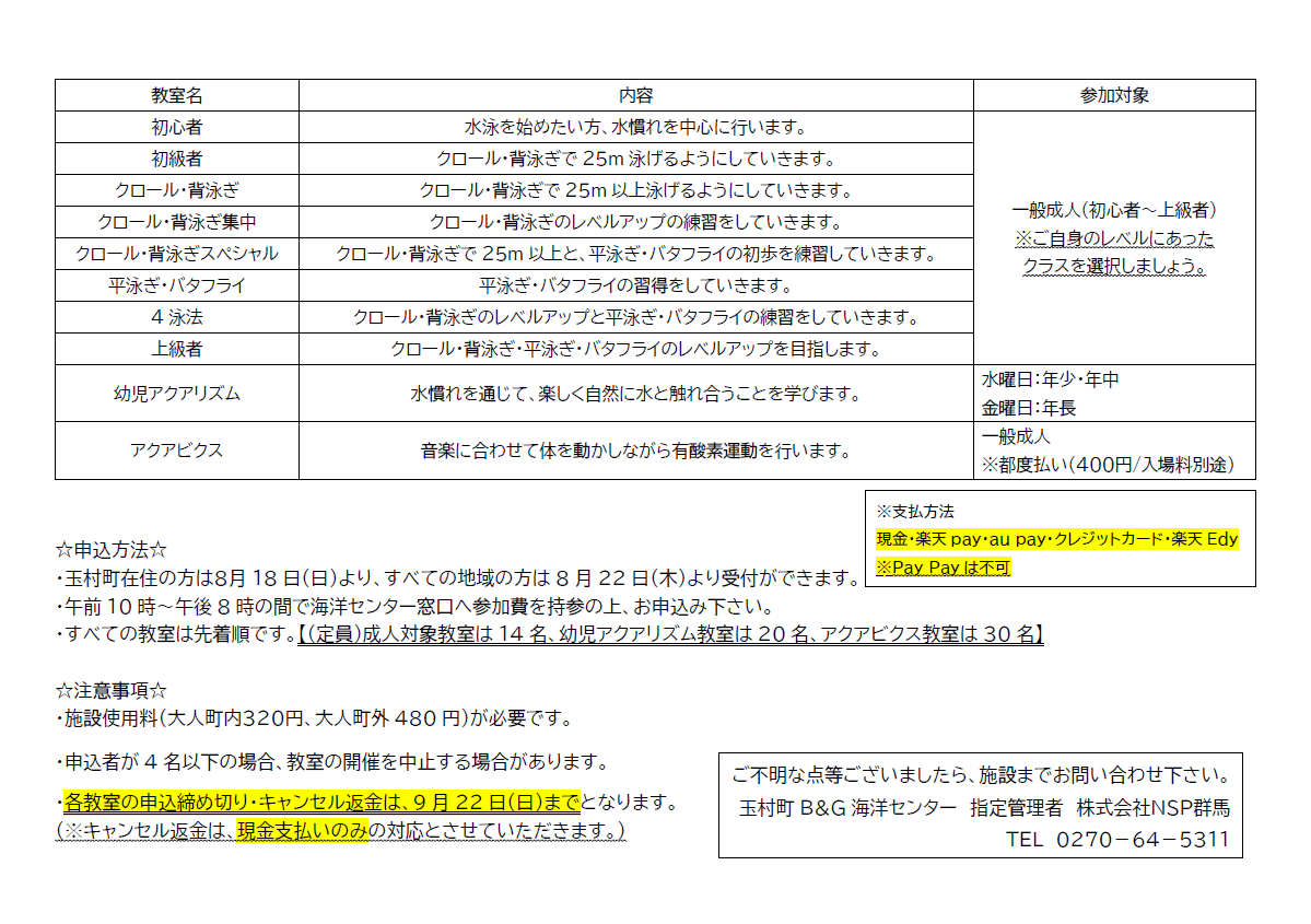 | 期間 | 2024/08/18〜2024/09/22 | 会場 | 玉村町B&G海洋センター |