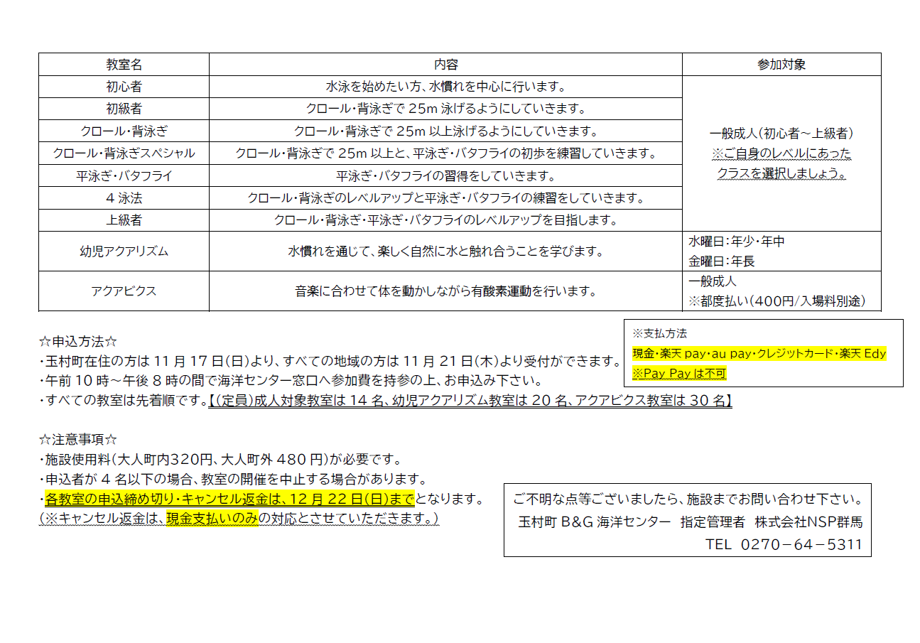 | 期間 | 2025/01/07〜2025/03/27 | 会場 | 玉村町B&G海洋センター |