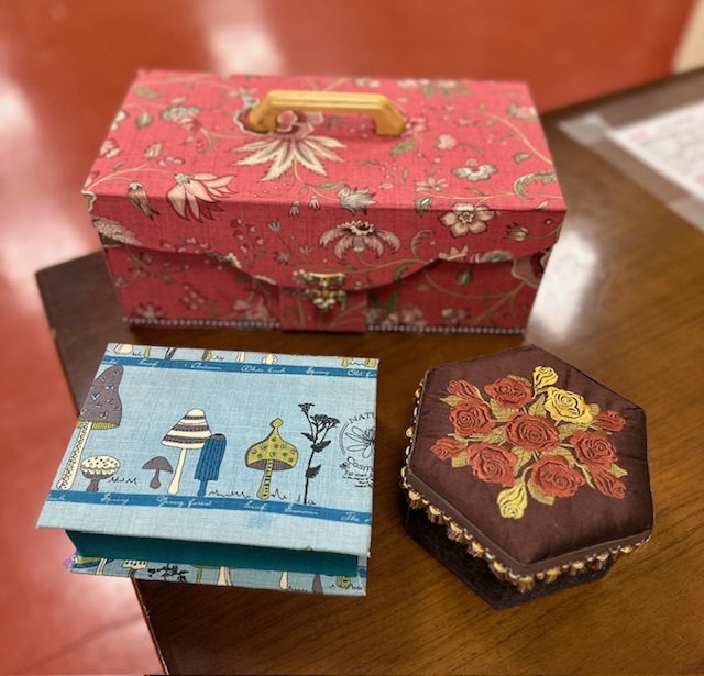日仏カルトナージュ協会・講師 髙橋眞由美先生の指導で、針や糸を使わずに紙でつくった箱に布を貼り、きれいに箱を飾ります。