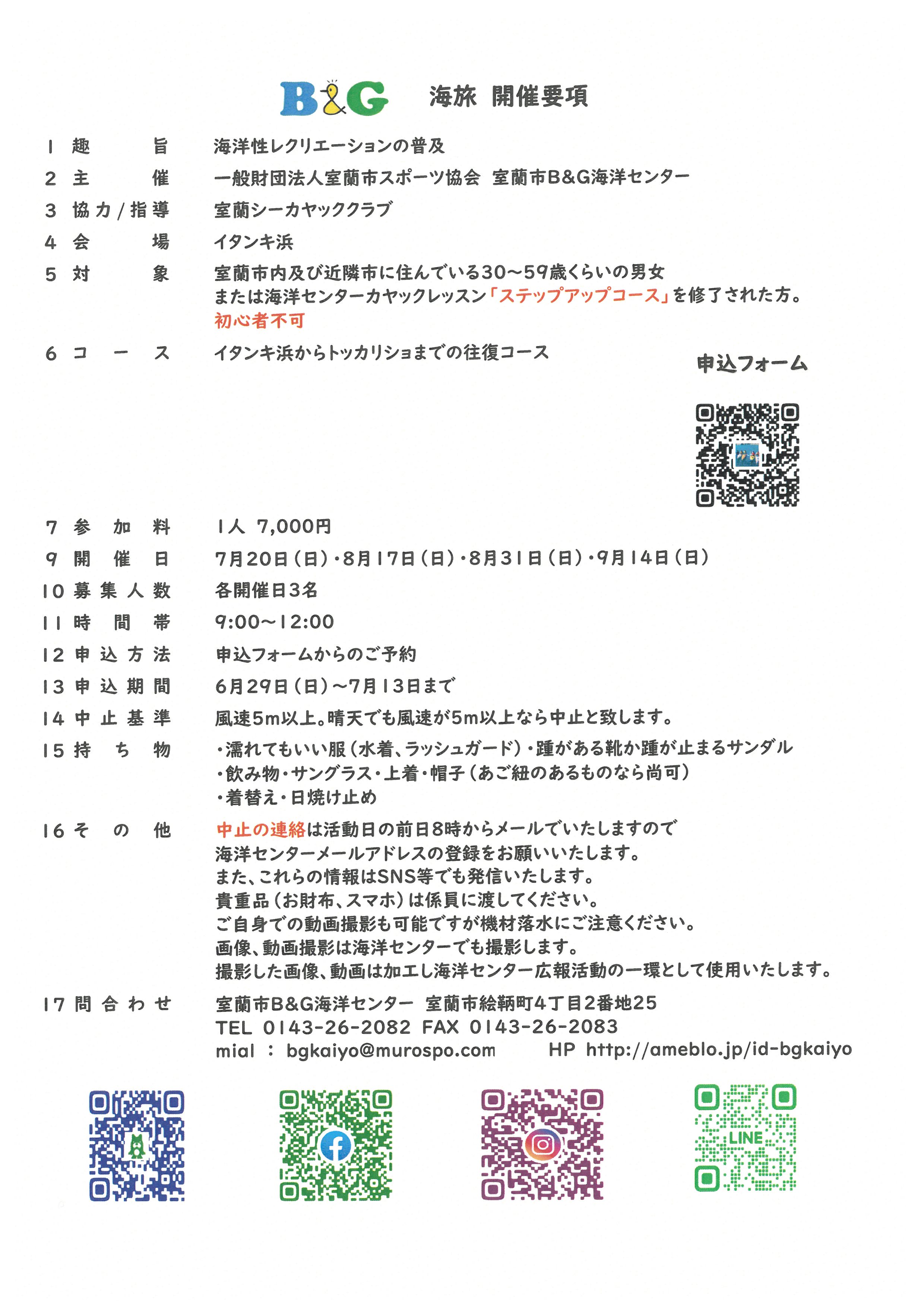 | 協力 | 室蘭シーカヤッククラブ | ||
