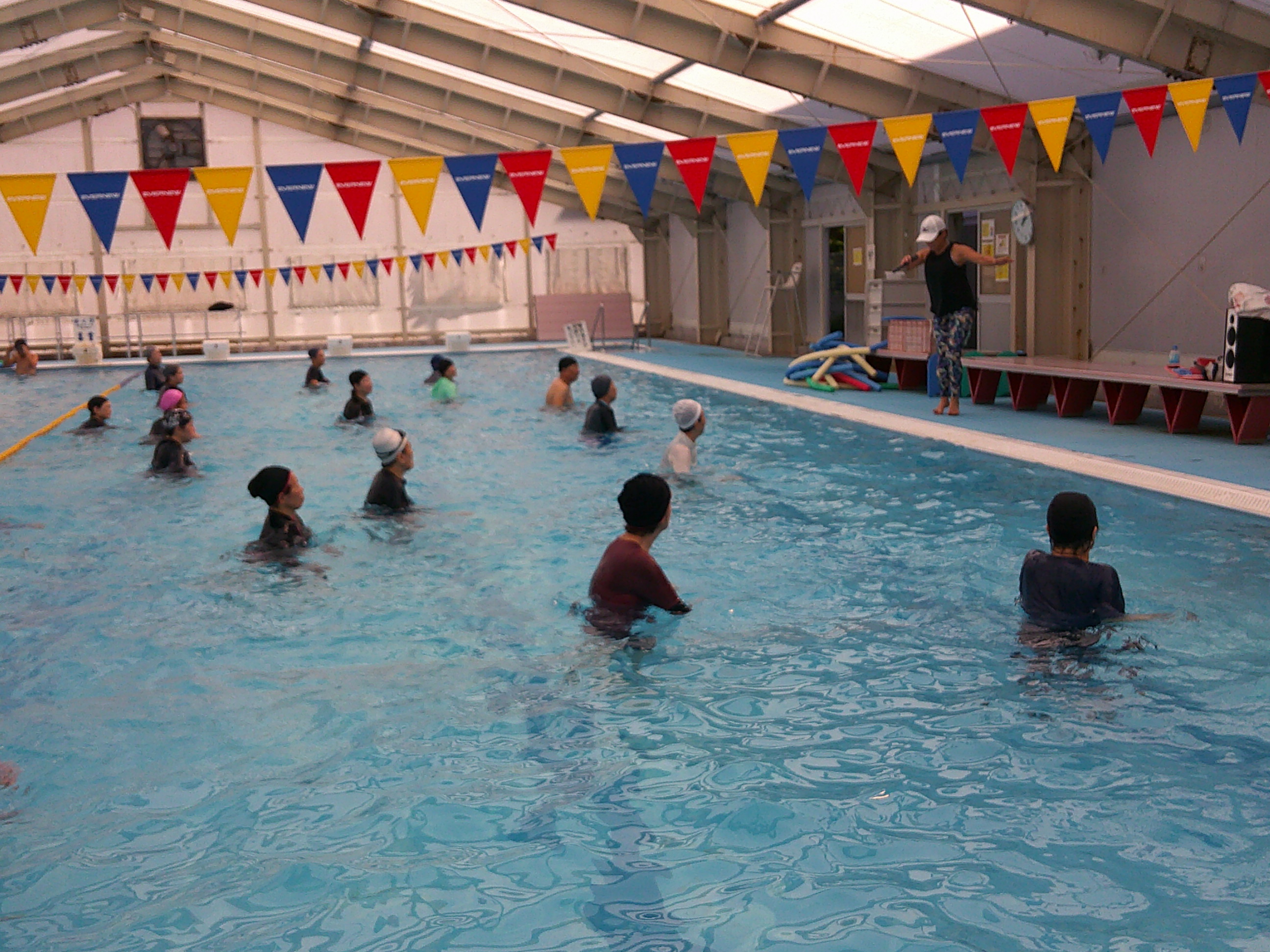 音楽に合わせて水中で身体を動かします。