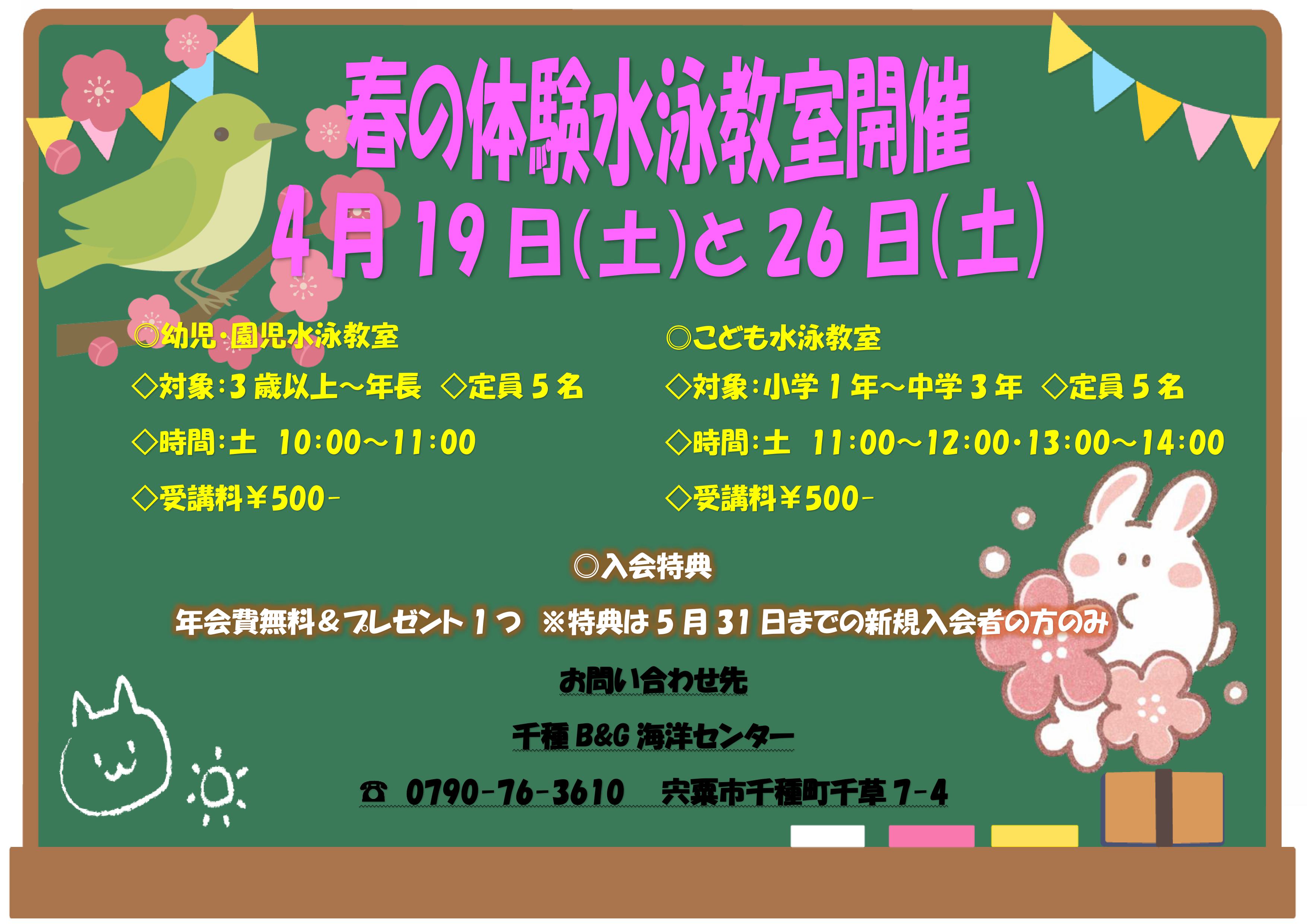 兵庫県 宍粟市 春の体験水泳教室内容:教室・研修会