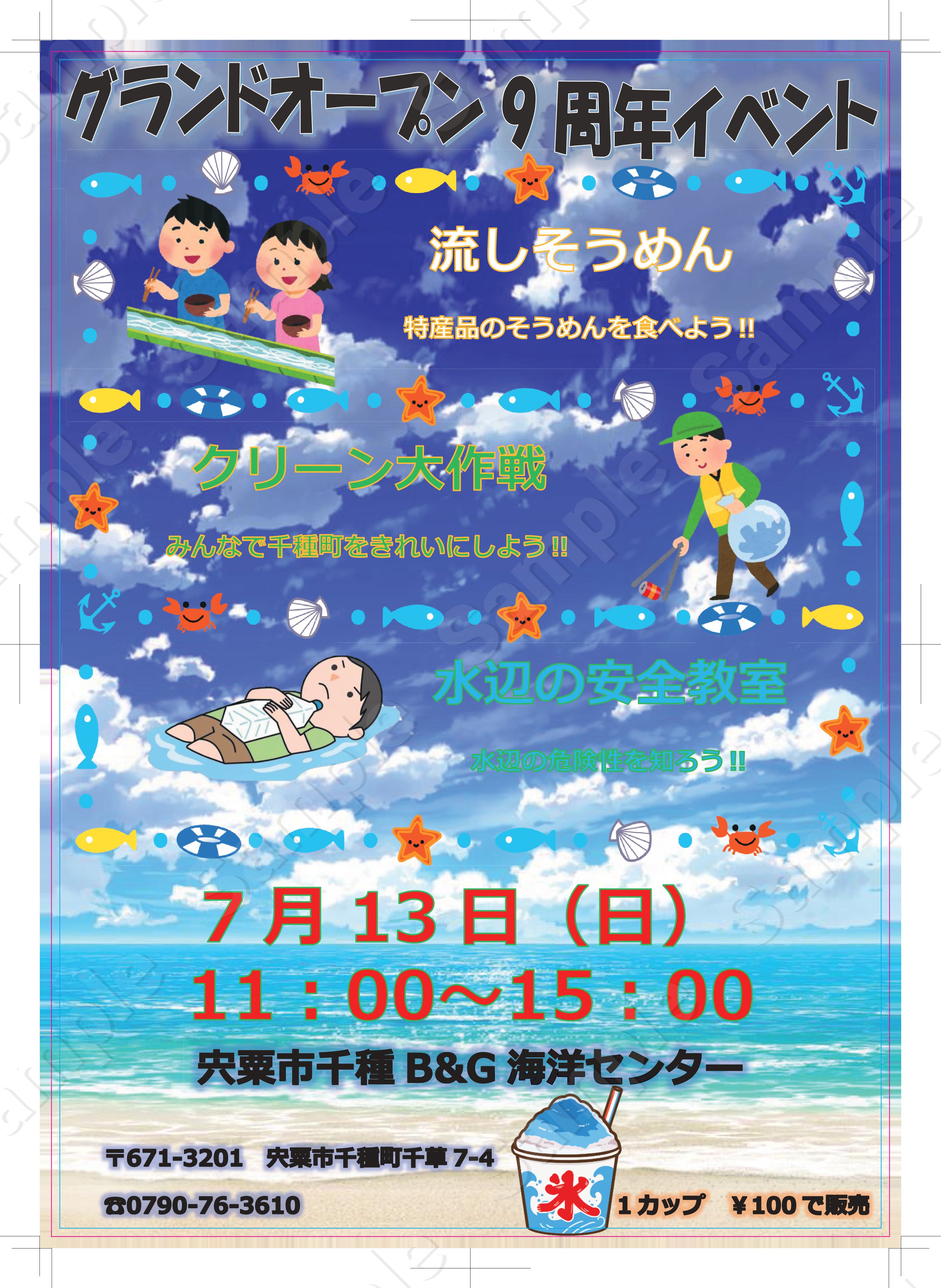 兵庫県 宍粟市 グランドオープン9周年イベントグランドオープンから9周年を記念し、今年もそうめん流しを行います! その他「クリーン大作戦」、「水辺の安全教室」も実施します ぜひご参加ください!