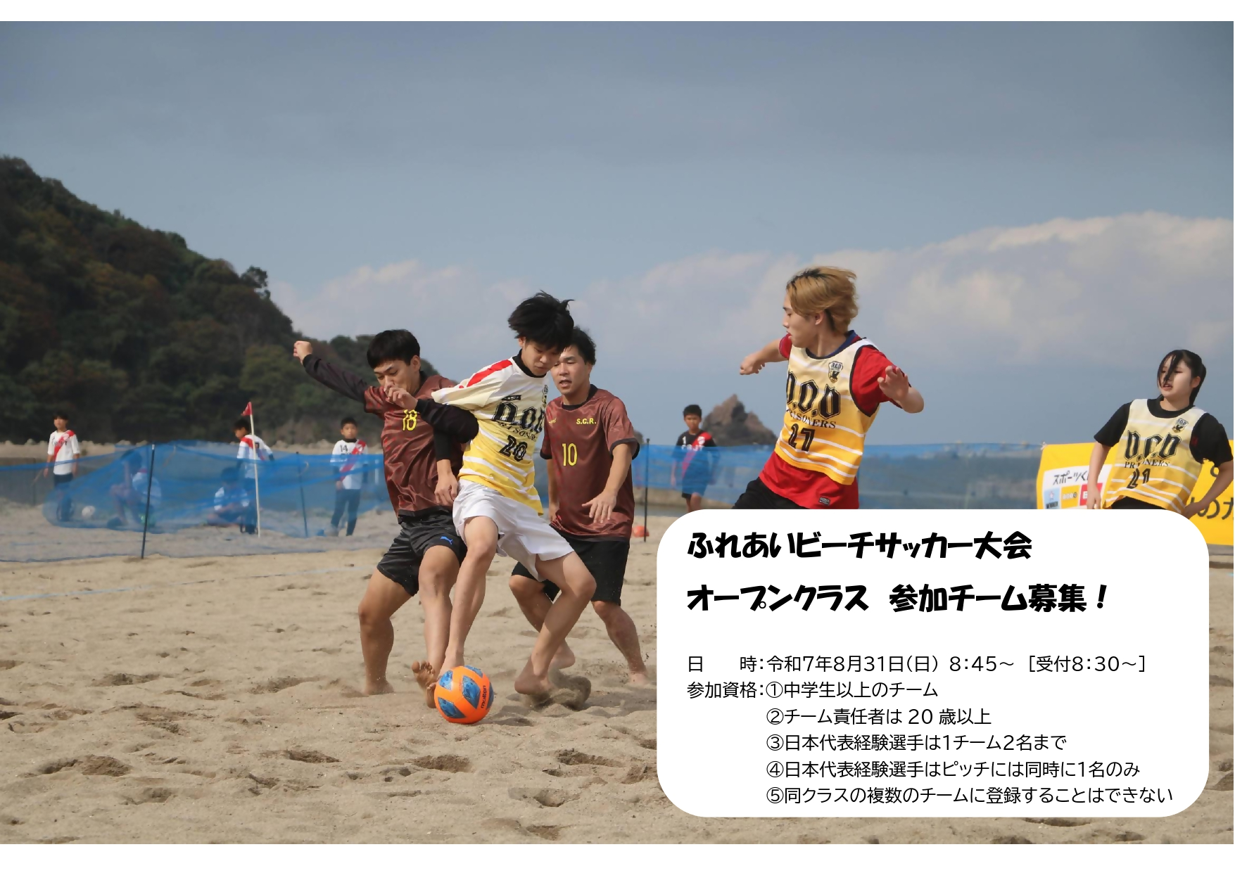 兵庫県 新温泉町 ビーチサッカー大会・教室内容:海や川での体験/自然体験/スポーツ大会・イベント/健康関連/環境学習/交流事業