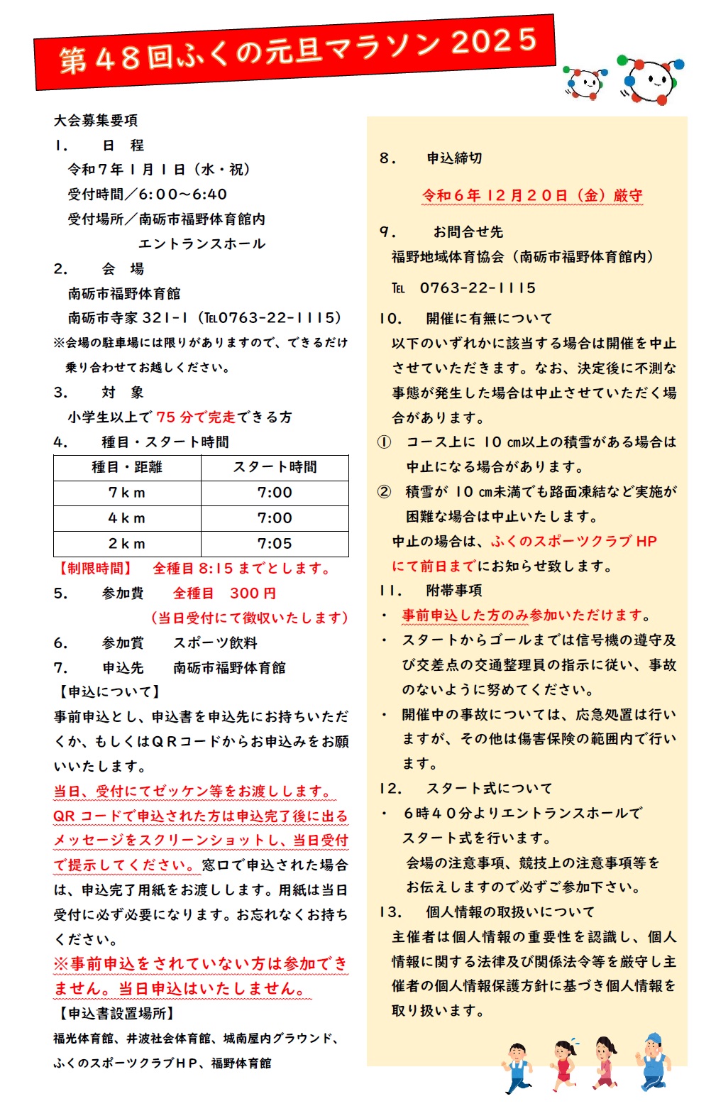 富山県 南砺市 第48回ふくの元旦マラソン新年の幕開けをマラソンからスタートしませんか ご家族、ご友人とのご参加をお待ちしております
