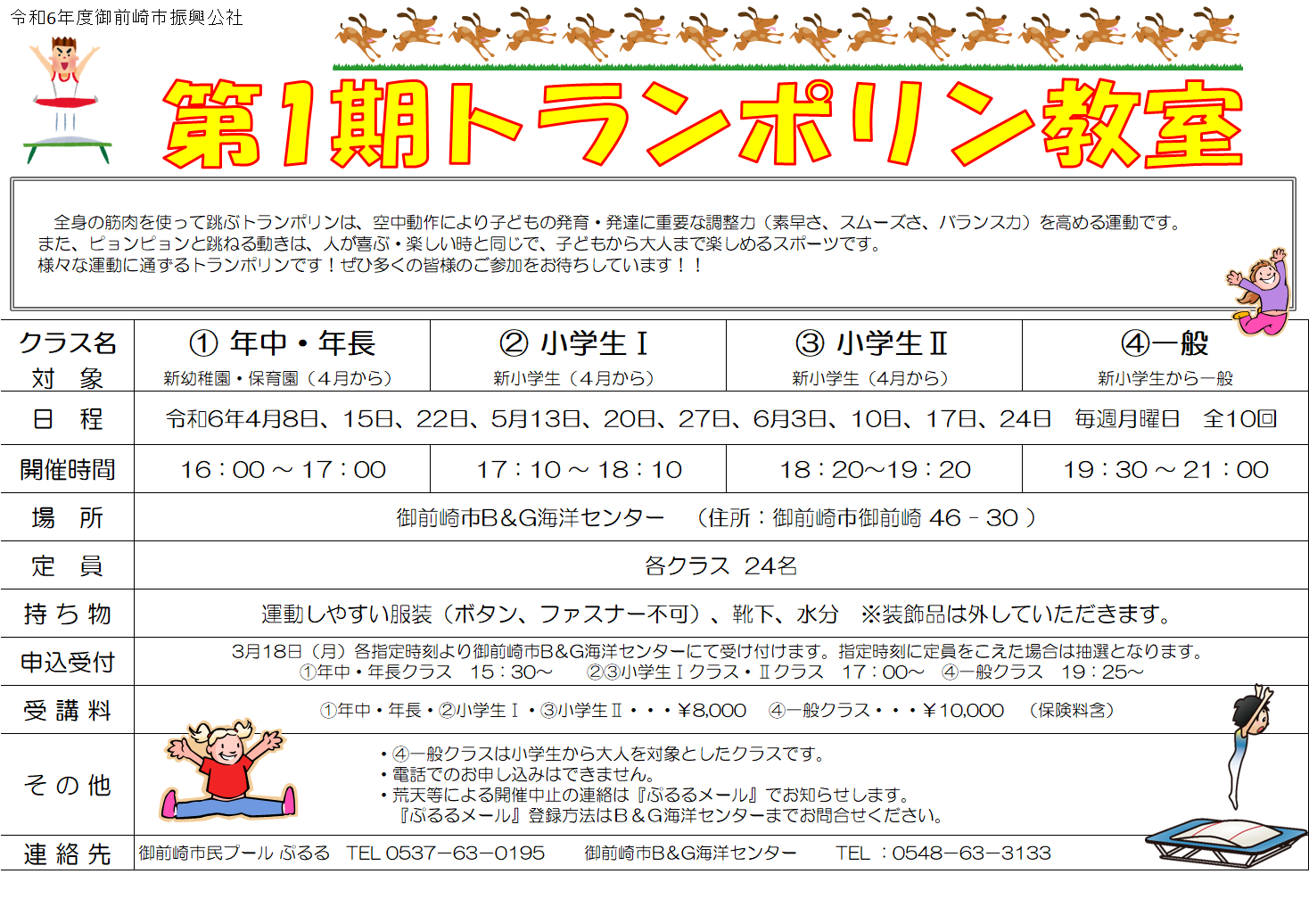 施設やイベントを探す イベントを探す ホーム イベントを探す 検索結果一覧 検索結果 検索結果は新着順に表示しております 検索条件 条件 イベントレポート 2025/06/28〜2025/06/28 静岡県 御前崎市 障がい者マリンスポーツ体験教室 内容: 開催地:御前崎マリーナ 2024/04/01〜2024/06/24 静岡県 御前崎市 第1期トランポリン教室 内容: 開催地:御前崎市B&G海洋センター 第一体育館