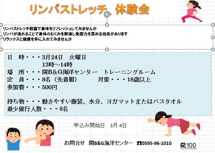 三重県 亀山市 リンパストレッチ体験会リンパストレッチ教室で身体をリフレッシュしてみませんか!