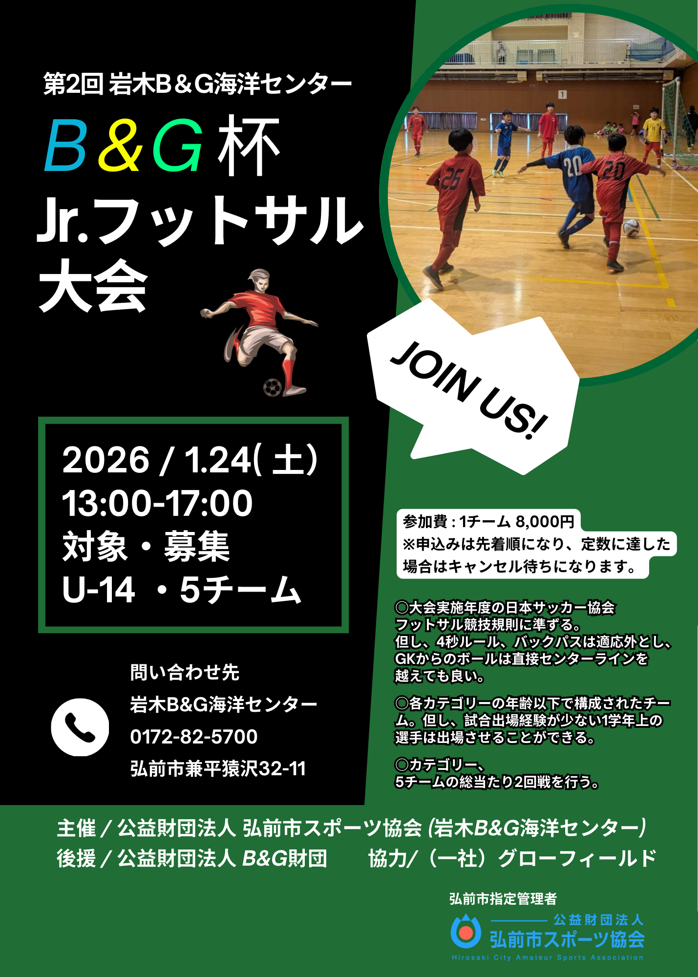 青森県 弘前市 B&G会長杯 Jr.フットサル大会内容:スポーツ大会・イベント