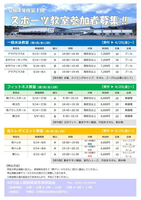 岩手県 陸前高田市 令和7年度第1期水中ウォーキングA内容:健康関連/交流事業/教室・研修会