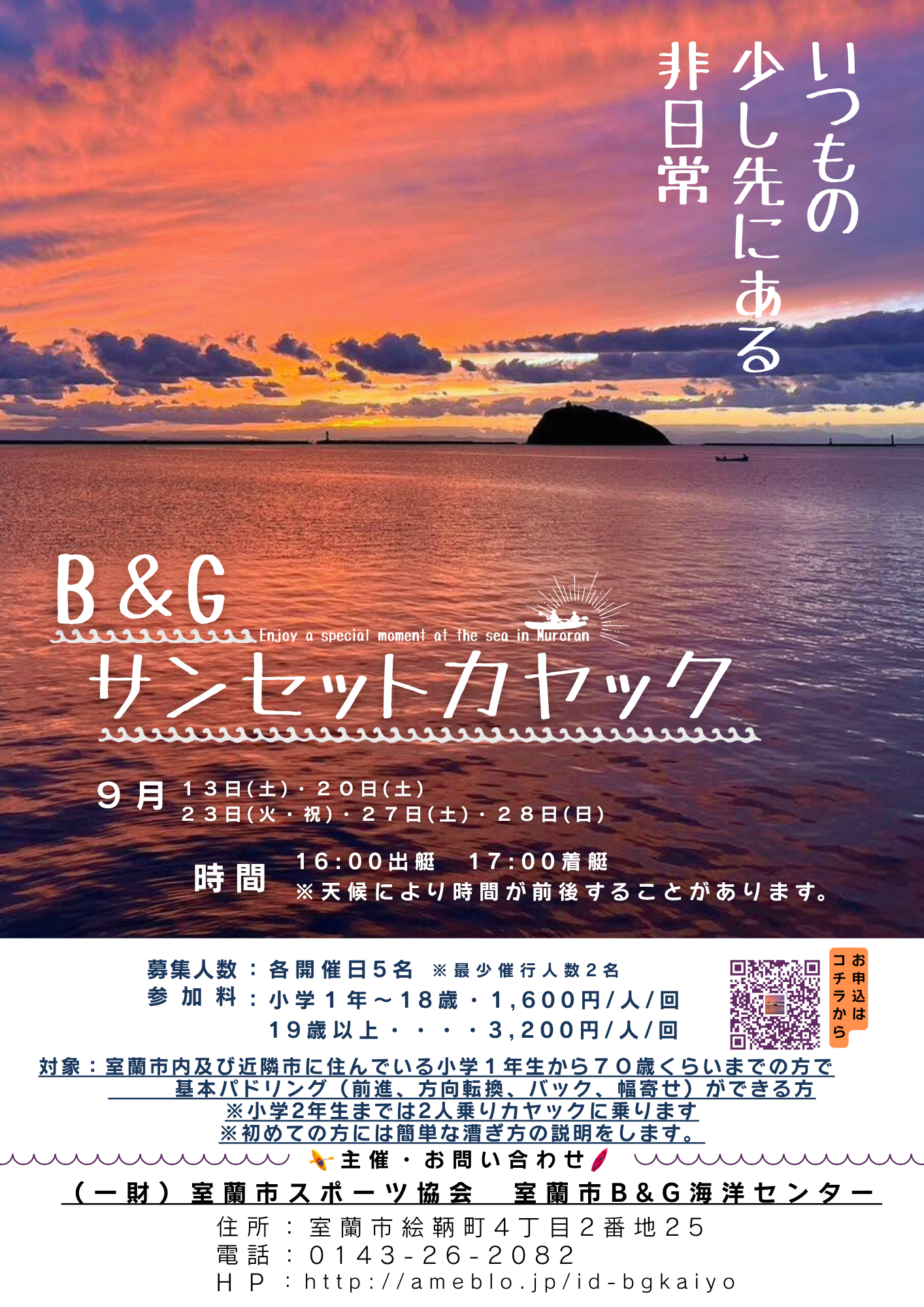 北海道 室蘭市 B&Gサンセットカヤック内容:海や川での体験