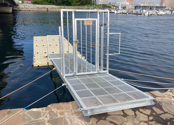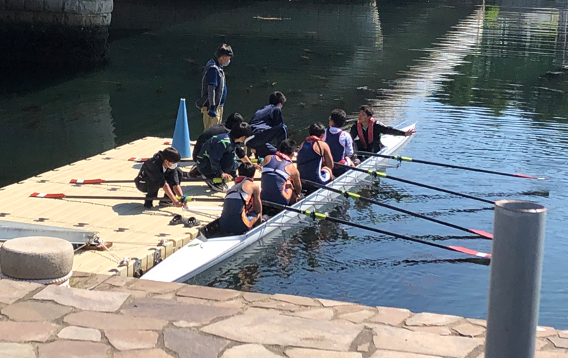 配備式後は、海洋クラブ員たちが新しい浮き桟橋からボートで海に漕ぎ出し、早速配備された器材が活用されました。
