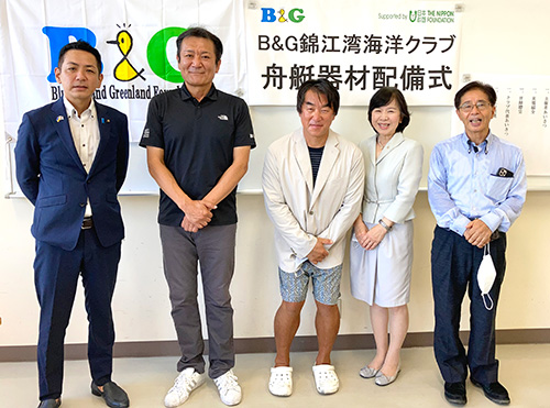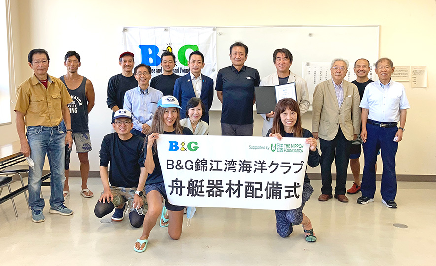 B&G財団は、全国274ヶ所の「B&G海洋クラブ」と共に、海洋性スポーツを通じた青少年の健全育成や地域の活性化を図っており、活発な活動を行う海洋クラブに舟艇器材などを支援しています。7月30日鹿児島湾奥を拠点にパドルスポーツ活動を行う「B&G錦江湾海洋クラブ」への舟艇器材配備式を実施しました。