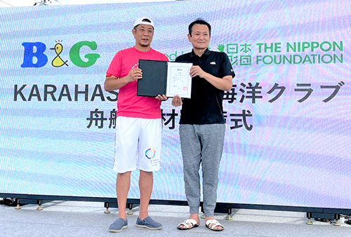 配備式には、KARAHASHI B&G海洋クラブ 小原隆史代表をはじめ、大津市商工会議所 杉野善彦副会頭、B&G財団