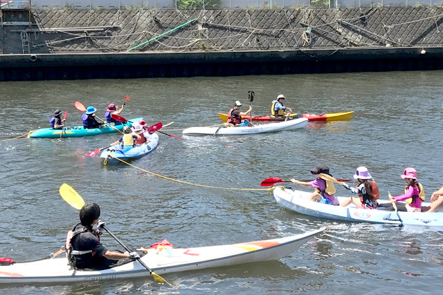 境川でのシーカヤック教室の様子