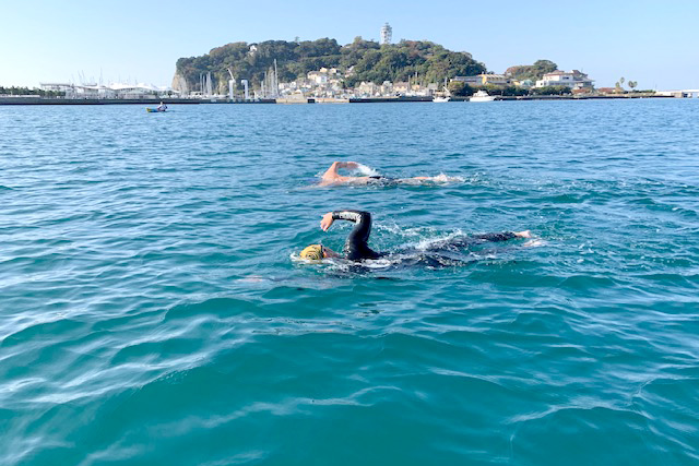 片瀬東浜海岸での「湘南・オーシャンスイム・シリーズ戦2020の様子
