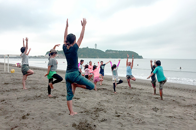 アクティビティ前に行うバディオリジナルのヨガレッチ体操の様子