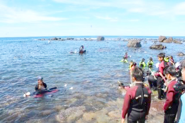 活動水面である「二の浜海岸」は越前加賀海岸国定公園内にあり、美しい景観を眺めることができる遊歩道が整備された磯浜海岸で、磯観察など環境教育に最適なフィールドです。浅瀬で見通しも良いことから、マリンスポーツにも良好な環境となっています。