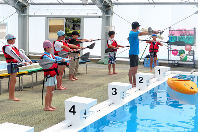 市内には海洋センター(プール・体育館)があり、これまでも海洋性レクリエーションを子どもたちに気軽に体験してもらうため、プールを活用したカヌー教室を頻繁に実施。今年度は新たに水上スキー体験会をプールで実施するなど様々な取り組みを行っています。
