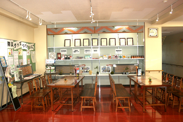 雲南市加茂地区に在住の「現代の名工」舟木氏に依頼して展示用の棚を制作、設置しました。 その卓越した技術を地域住民等へ周知し、海洋センターを情報発信の場とすることで、「文化」をキーワードにした来館者を呼び込んでいます。 文化教室を開催した後には、続けてヨガ等の軽運動の教室への参加を促すことで、住民の皆さんの健康づくりも進めていきます。 |