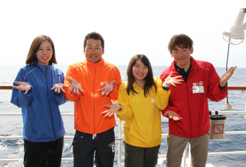 今回の春休みは、体験クルーズ乗船で充実したものになりましたか?盛りだくさんの船内プログラムと、小笠原の美しい自然を満喫できる寄港地活動プログラム、どちらも皆さんの印象に強く残ったことでしょう。皆さんには、今回のクルーズで体験した様々なプログラムを、ぜひ大勢の人たちに話してもらいたいと思います。海のこと、小笠原の自然のこと、クジラやアホウドリのことをまだ知らない人たちに、その魅力を伝えてあげてください。多くの人たちが、海と自然の美しさに触れられることを祈っています。