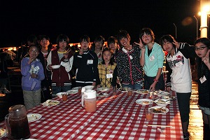 今日の夕食は、デッキディナー。小雨が降っていたため、開始時間が少し遅れましたが。小笠原メンバーを囲んで楽しい夕食を楽しむことができました。