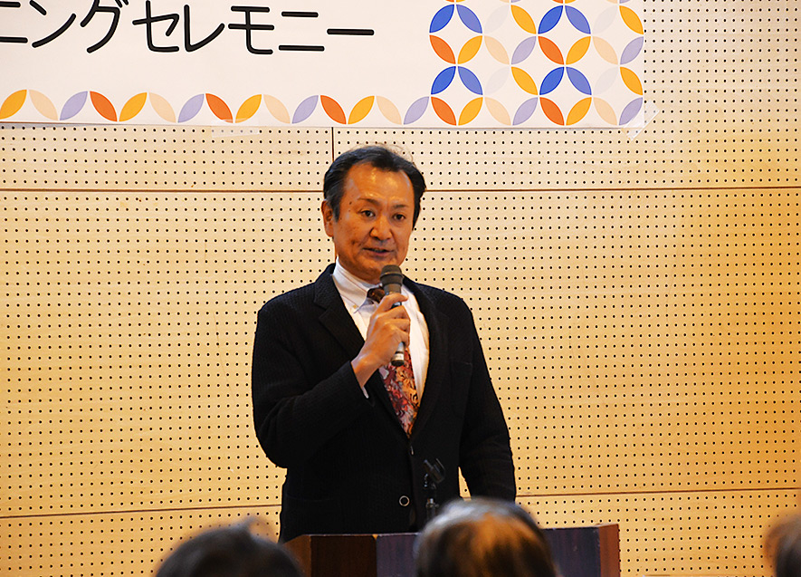 続いて、稲岡町長は仮設住宅団地の皆さんから、団地内にコンビニや商店等を設置してほしいとの要望があり検討していたところ、B&G財団から店舗開設の話をいただき計画を進めたと話し、「今日、晴れてオープンを迎えることができたことを嬉しく思う」と述べた。